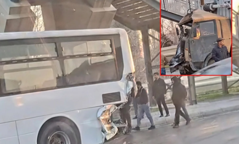 Bildirilib ki, “KamAZ” markalı yük avtomobili 114 nömrəli marşrut xətti üzrə hərəkətdə olan sərnişin avtobusuna çırpılıb. Hadisənin bu gün səhər saatlarında baş verdiyi qeyd olunur. Xəsarət alanların olub-olmaması ilə bağlı hələlik məlumat yoxdur.