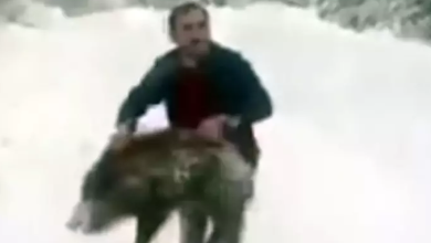 Maraqlı hadisə: Vəhşi donuzu tutub qucaqladı, sonra təbiətə buraxdı