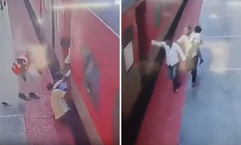 Hindistanda hərəkətdə olan qatara minməyə çalışan ata və oğlu platforma boyunca sürüklənib. Hadisə Prayagraj Dəmir Yolu Stansiyasında baş verib.