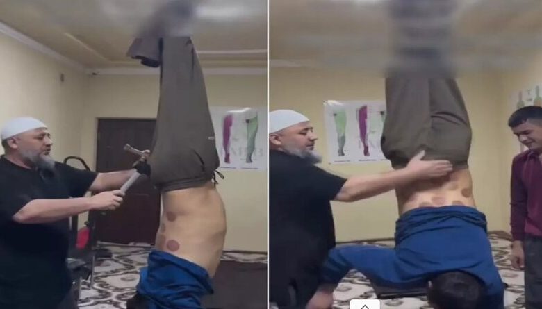 Müalicə yox, işgəncə: Xəstəni ayaqlarından tavana asıb çəkiclə “müalicə etdi” – VİDEO