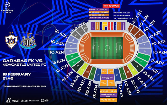 UEFA Çempionlar Liqasının pley-off mərhələsində keçiriləcək “Qarabağ” – “Nyukasl” matçının biletləri bu gün, saat 12:00-da satışa çıxacaq.