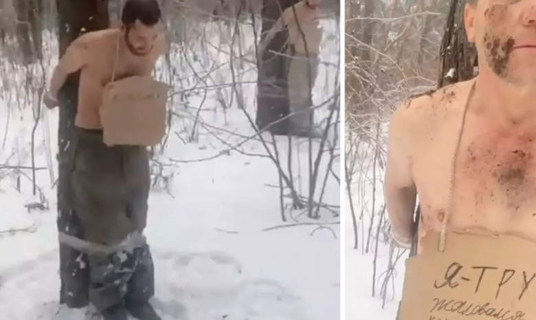 Sonxeber.az xarici mediaya istinadən xəbər verir ki, kadrlarda döyüşməkdən imtina etdikləri və ya mövqelərini tərk etdikləri iddia olunan hərbçilərin şaxtalı havada soyundurularaq ağaclara bağlandığı görünür.